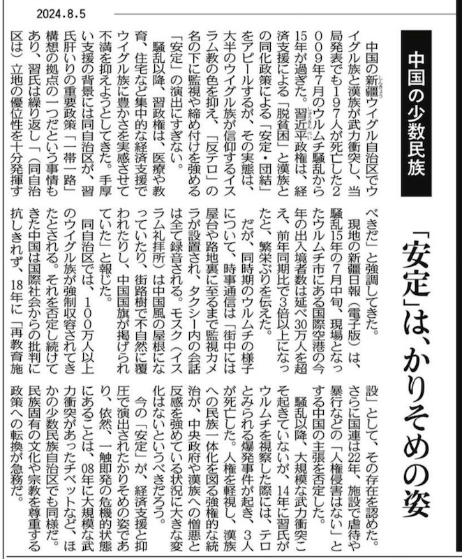 最後に「民族固有の文化や宗教を尊重する政策への転換が急務だ」とまとめられているが、これは中国だけでなく、イスラエルやロシア、ミャンマー、シリアでも鳴らすべき警鐘である。